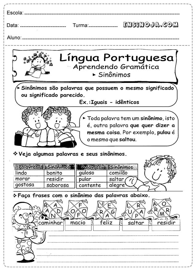 Atividades de português 3° ano para imprimir que ajudará a utilizar dos diferentes recursos que existe em nosso vocabulário com exercícios que ficção a leitura, escrita, produção e interpretação de texto. Os alunos poderá expressar-se com diferentes palavras tendo liberdade, clareza e criatividade.