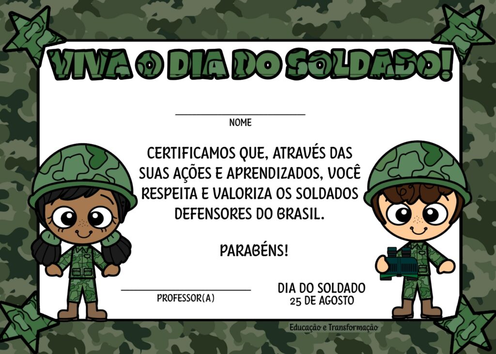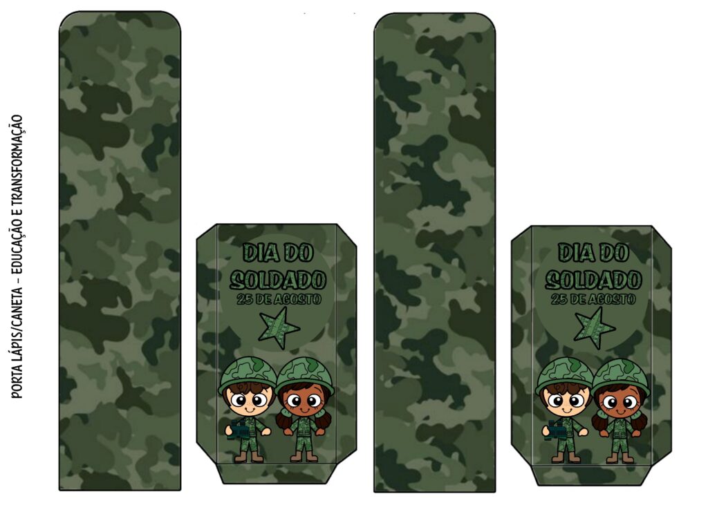 Um pacote completo (em 2 PDFs) para celebrar o Dia do Soldado (25 de agosto) com a turma. Todas as artes vêm coloridas, prontas para imprimir, recortar e montar em A4.